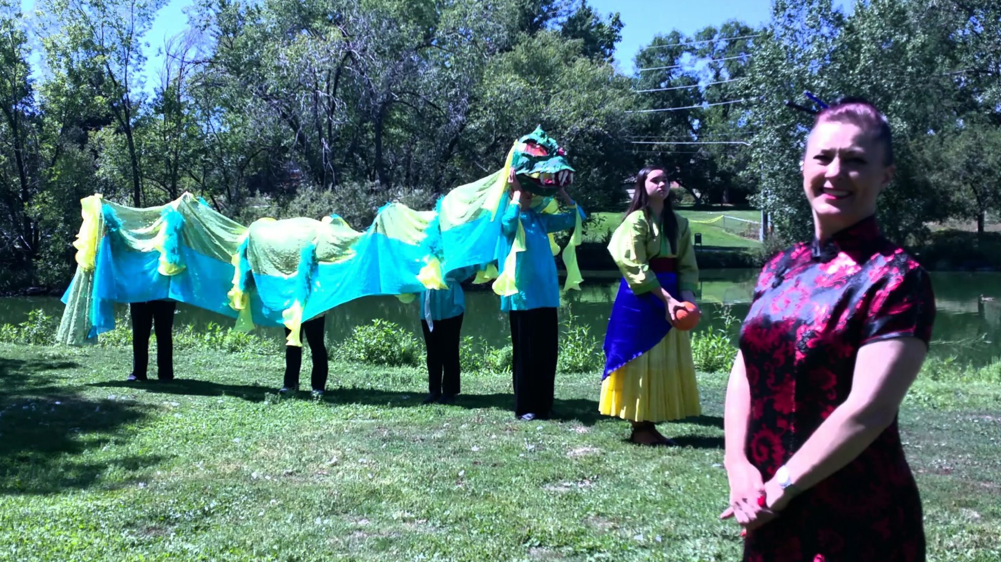 The dragon will follow the lead of A lead person with a pearl, we used Mulan. - Dragon Ripple