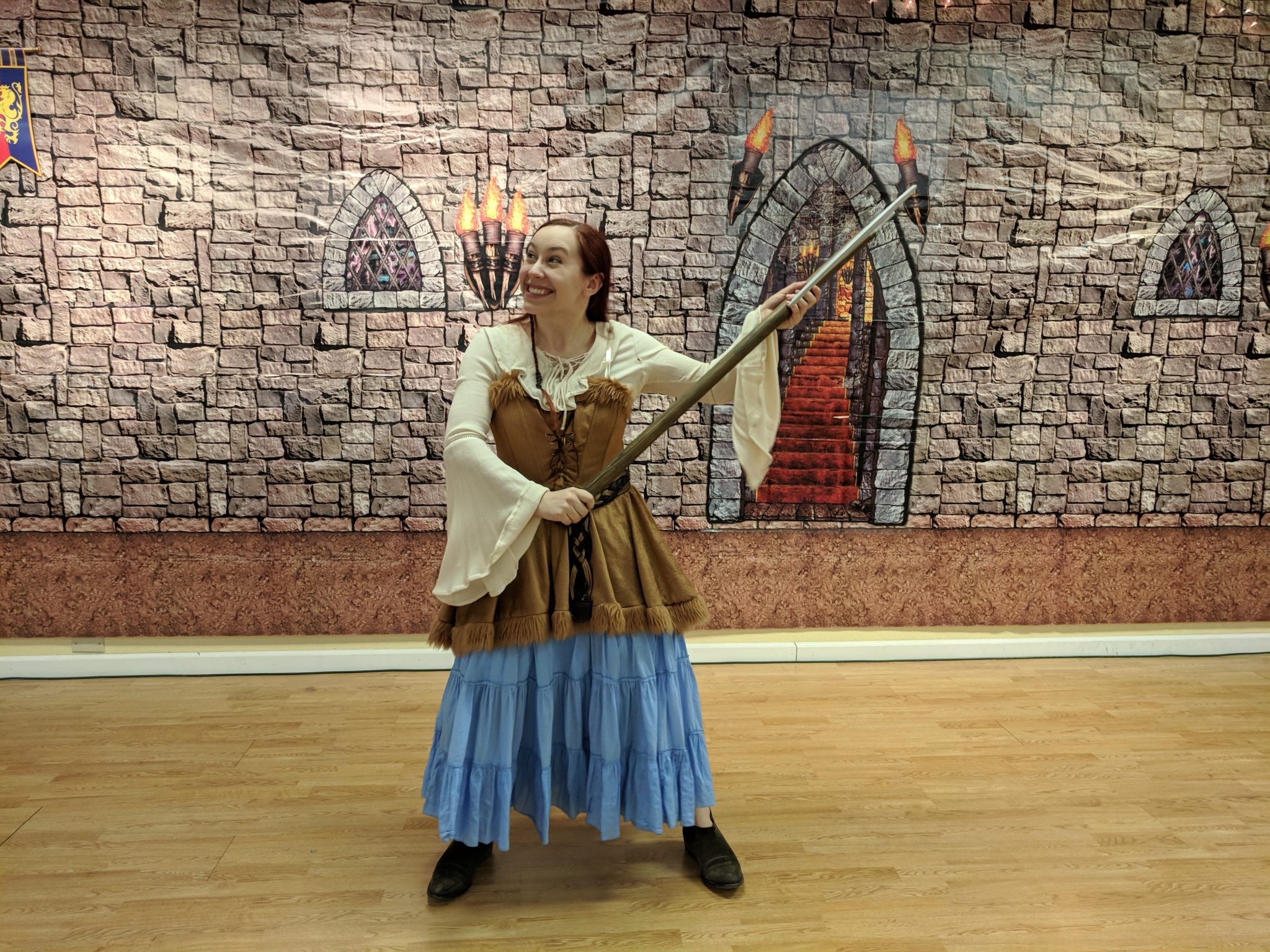 The dance I researched for Tolkien’s dwarfs was an ancient Viking dance. I found the re-enactment at the Viking museum in Norway. It is like other medieval branle (brawl) dances. The song I used for this demonstration was recommended by the Norwegian Viking museum. It is “Tryzna” By Stary Olsa. The pattern is not complicated.