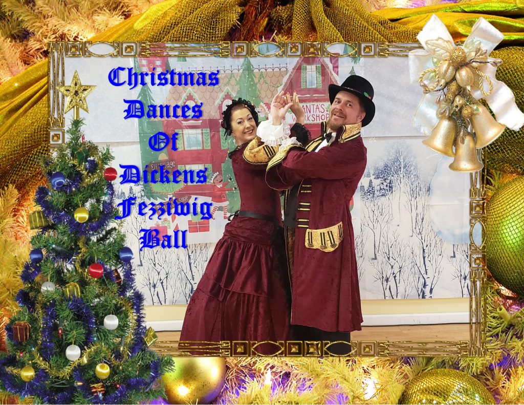 The Fezziwig’s ball would have begun with a Polonaise, followed by a first Waltz. Then they would have alternated group dances with round dances. The finishing dance or the Sir Roger de Coverley would have been saved for last so the evening would end on a happy note. The mixing of group and round dances creates a delightful dynamic for a lovely Christmas ball.