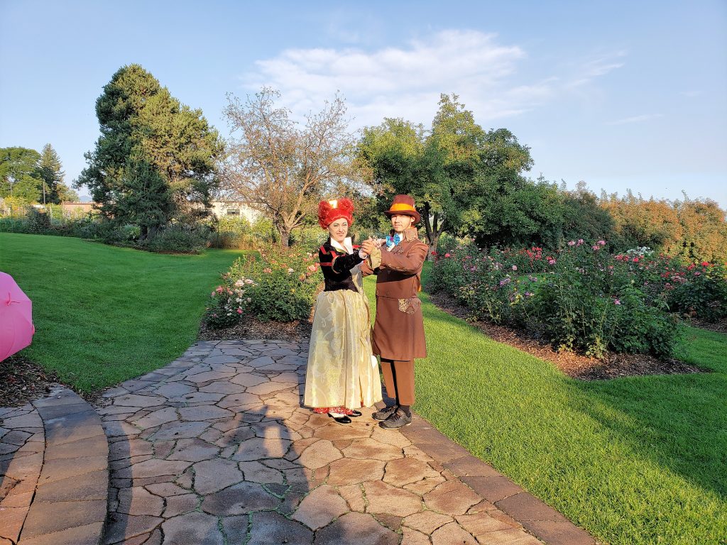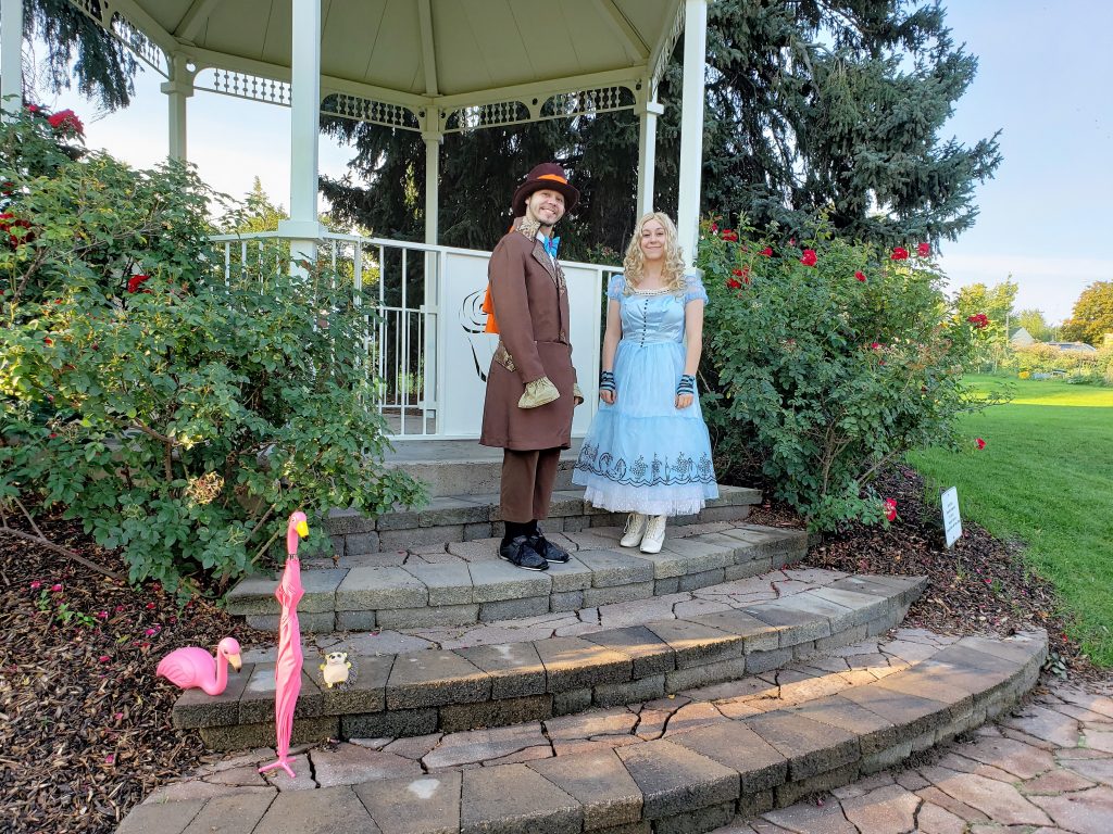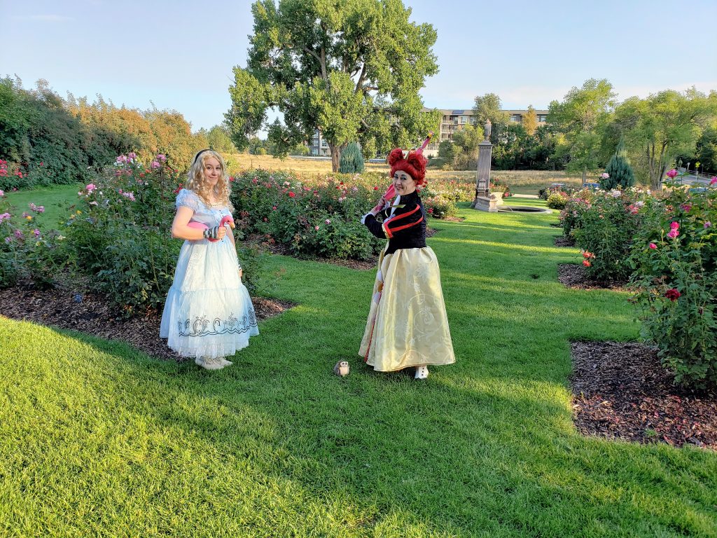 Everyone knows the rose is the Red Queen’s favorite flower, and America’s national flower. With that in mind we picked the Littleton War Memorial Rose Garden for our film location. This park is dedicated to veterans who have served in any of America’s wars, was purchased by the city of Littleton in 1964,