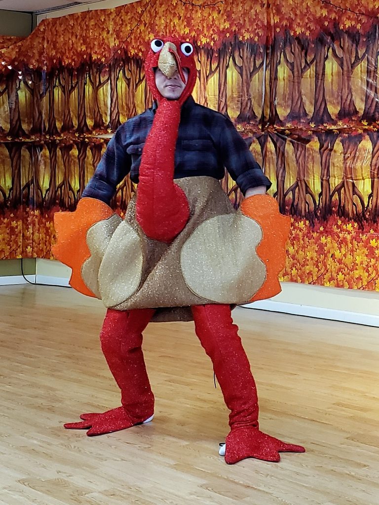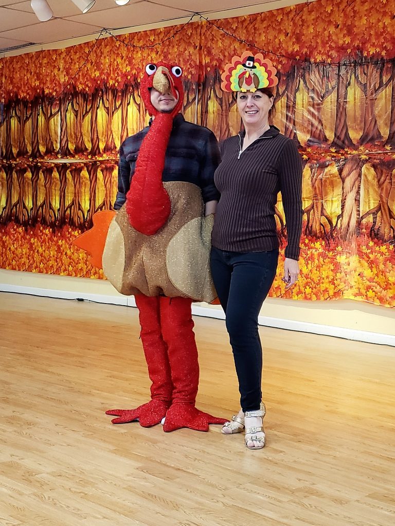 What dances would you do for thanksgiving? How about the Wobble! This popular line dance reminds me of turkeys. So, Bill dressed up as a turkey and we did a thanksgiving version of the Wobble line dance for you to learn along with.
