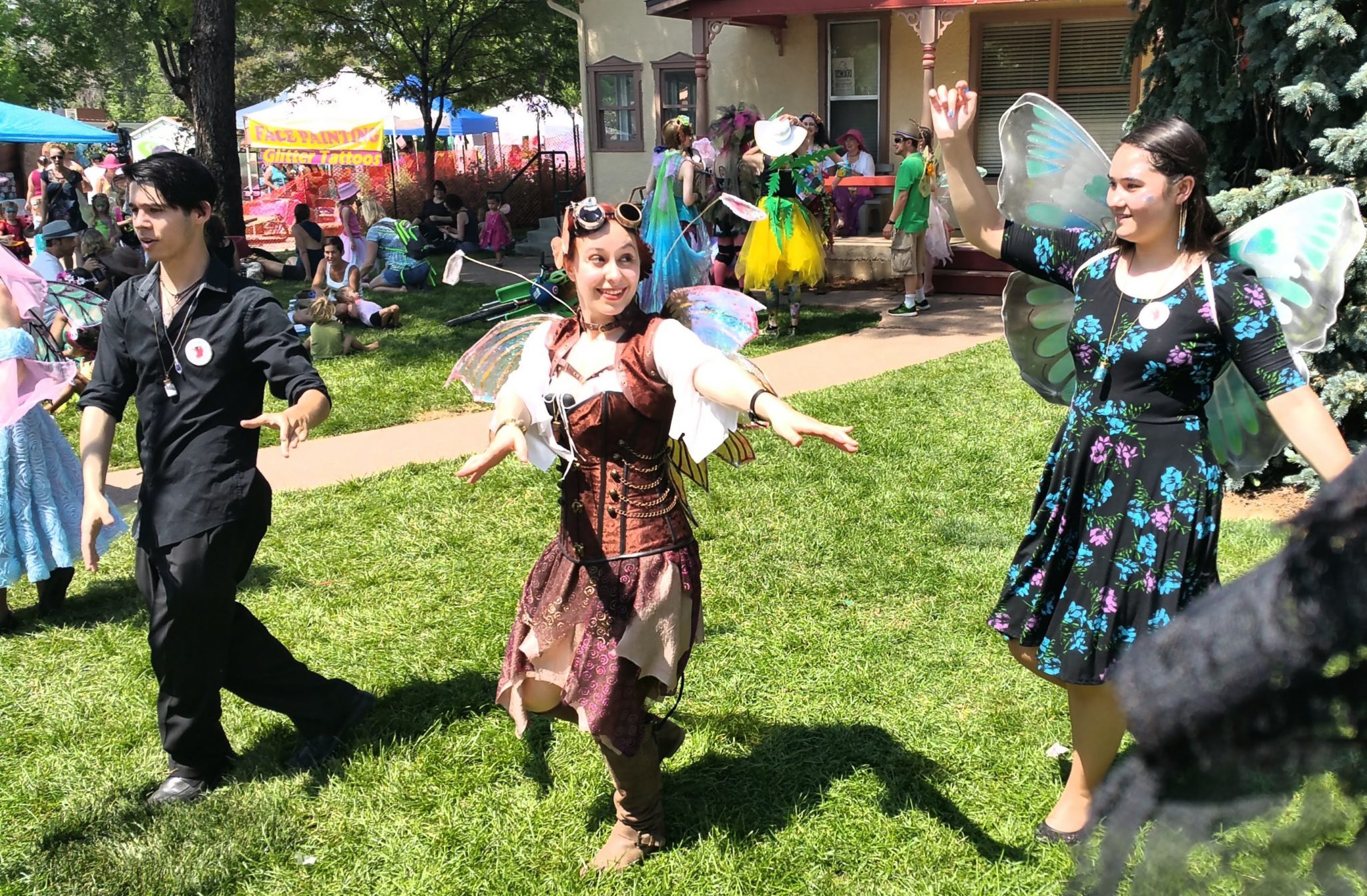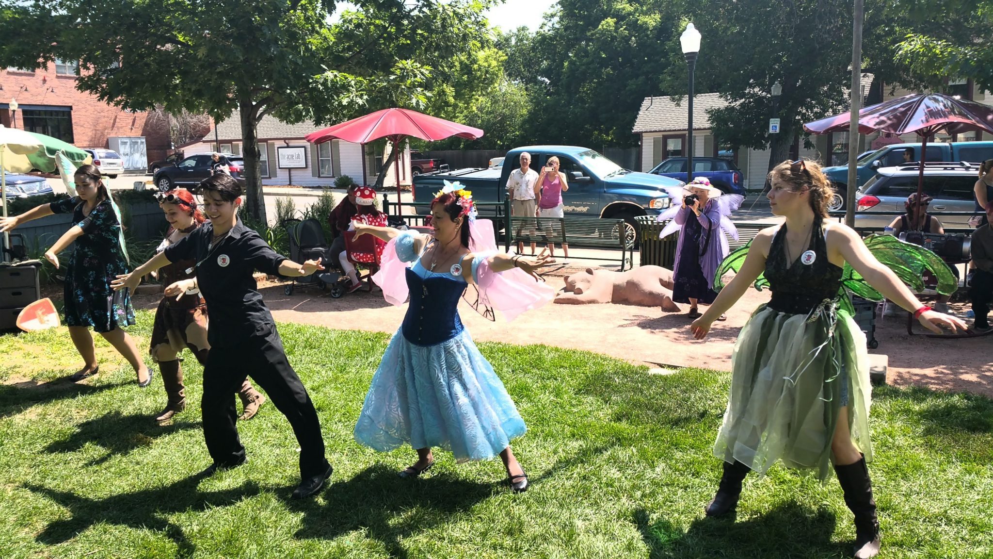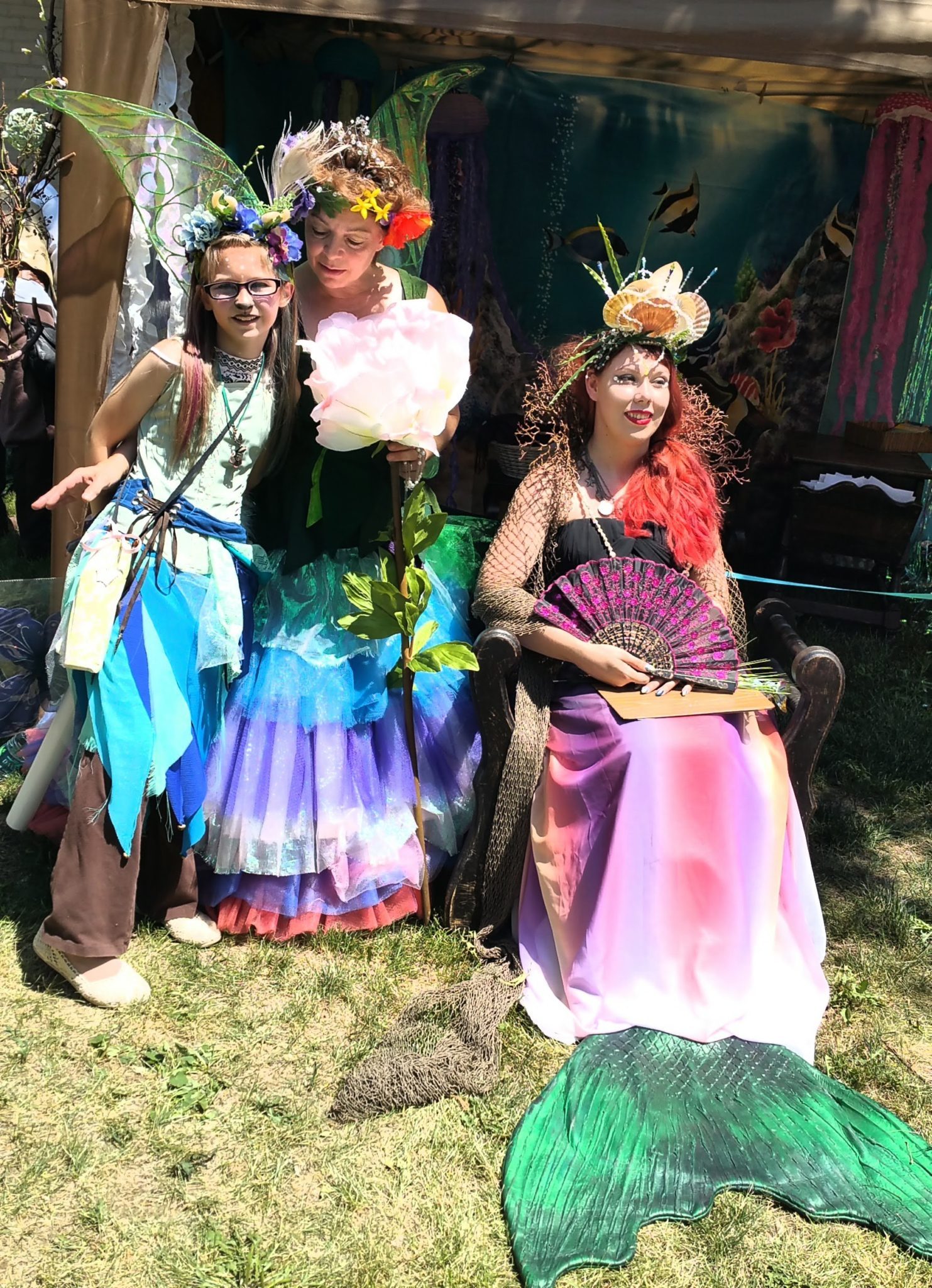 At the end of the opening ceremonies the queen rolled up to her court at the top of the street. Dancers from Adventures in dance continued to entertain faeries with medieval dances on the grass. They then processed up to Queens’s court to demonstrate the mermaid dance to under the sea for the Mer-queen. Dancers then